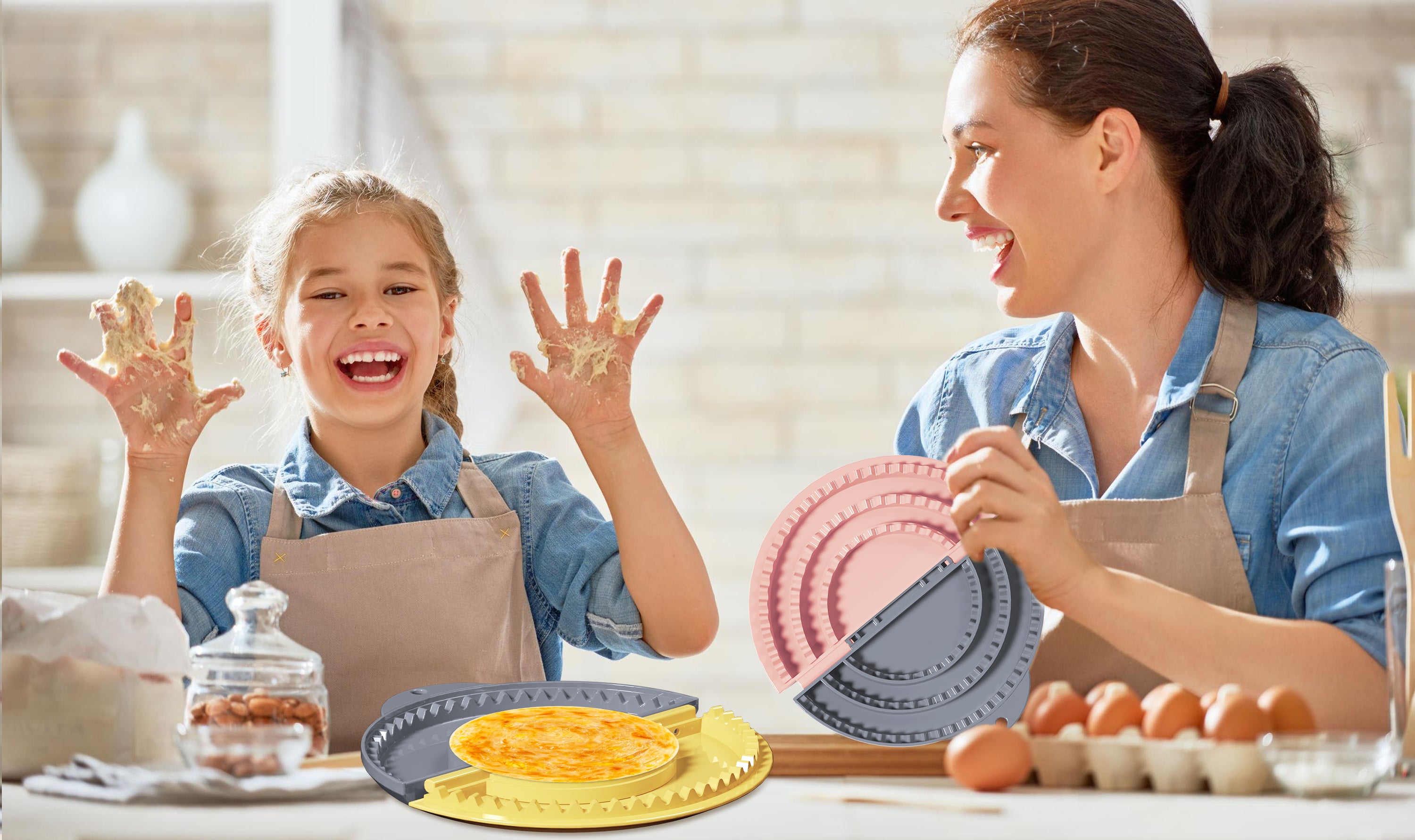 Tortilla Sealer,SELERS,Tacos tortilla crimper Maker Large,Adjustable 6"-8''-10" Crust,Quesadilla crimper for 6''-8''-10''-12''wraps,Tortilla,Dumplings,Sandwich,Grey Yellow